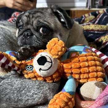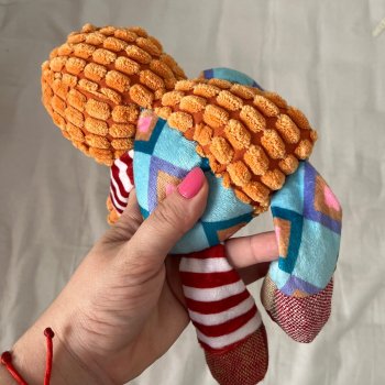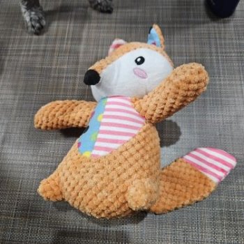 bought this adorable plushie for my fur baby...he just won't let it go 😄 it seems to be made of high-quality fleece which is a plus!