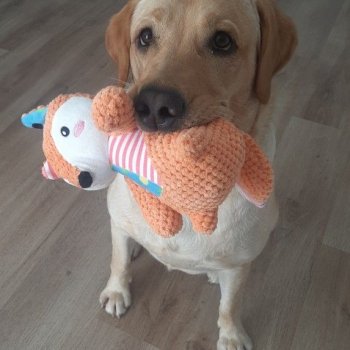 my canine friend absolutely loves chomping on this plushie - the added bonus? His teeth get cleaned in the process!