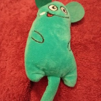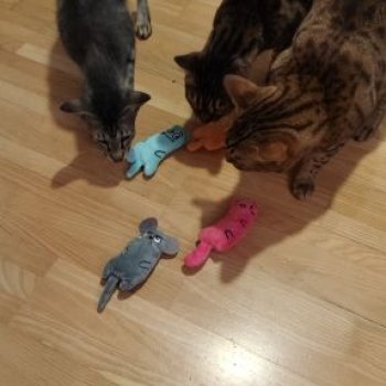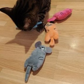 My little kitten, Davros loves his new mouse stuffy. Thank you very much.