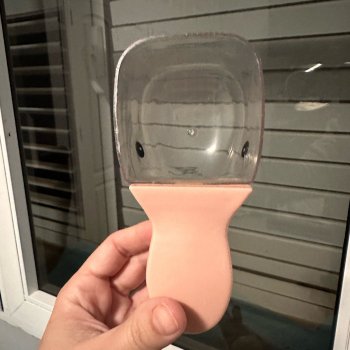 Is cute. It is also perfect to throw the right amount of food and on top of it keep the food container closed