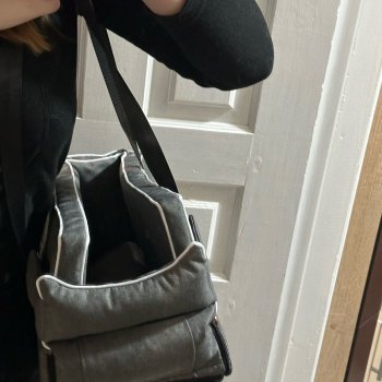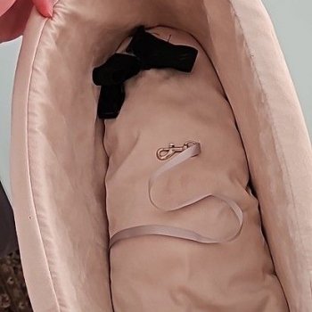 The baby is comfortable, but if the car moves, the bag will fall backwards. It's a string... so I have to hold the front of the bag all the time.